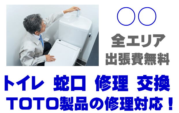 ○○でTOTO製品の修理業者をお探しなら当社までお気軽にお問い合わせください。トイレ便器タンクの故障、便座の修理、蛇口やシャワーの水漏れなどTOTO製品に関するトラブルなら何でもご相談ください。